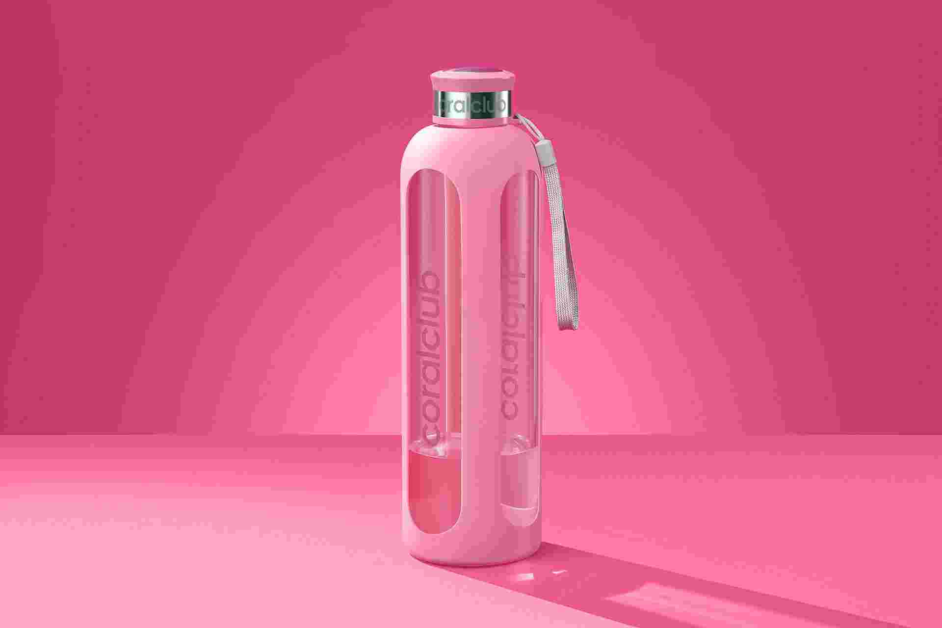 Clear Water glass bottle, Living Coral